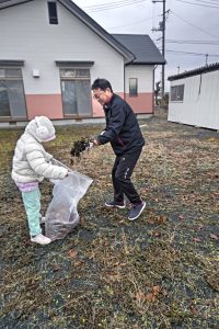 今日は藤島地区公民館の掃除があり、私は落ち葉集めとネットはずしに参加しました。